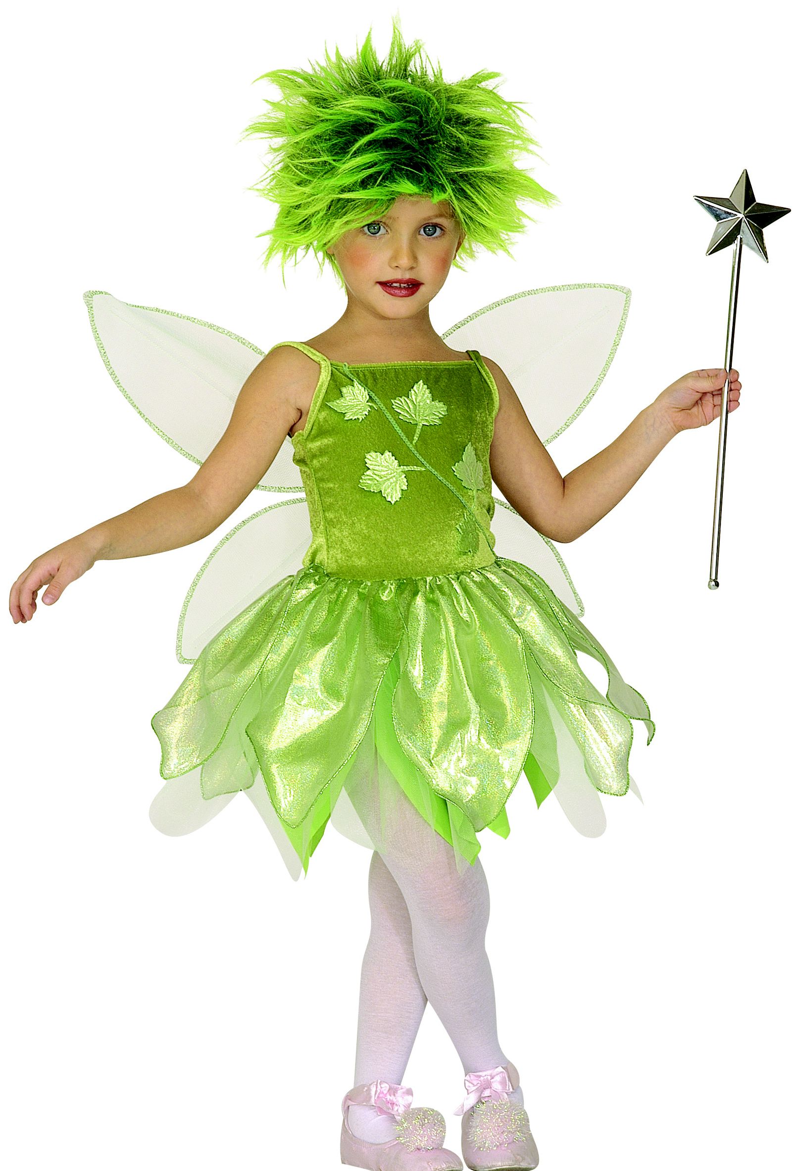 Votre petite fille incarnera une jolie petite fée des forêts, dans ce déguisement vert tellement mignon. Elle pourra, comme la fée Clochette, rêver qu’elle volette parmi les plantes et fleurs et exauce les souhaits grâce à sa baguette magique. Ce déguisement de fée pour fille se compose de la robe verte, d’aspect velours avec des petites feuilles cousues sur le buste et verte satinée en bas. Le costume de fée comprend également la paire d’ailes qui se fixent grâce à des scratchs. Un déguisement de fée pas cher parfait pour le Carnaval ou toute fête déguisée.